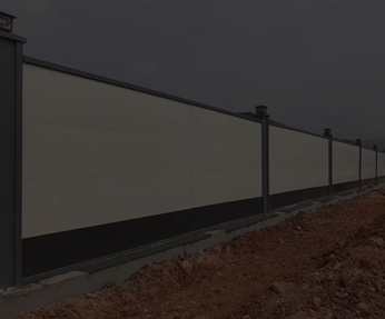 墻板選用彩鋼板,外貼噴繪布,具有防火和隔音功能,降低城市建筑噪音……